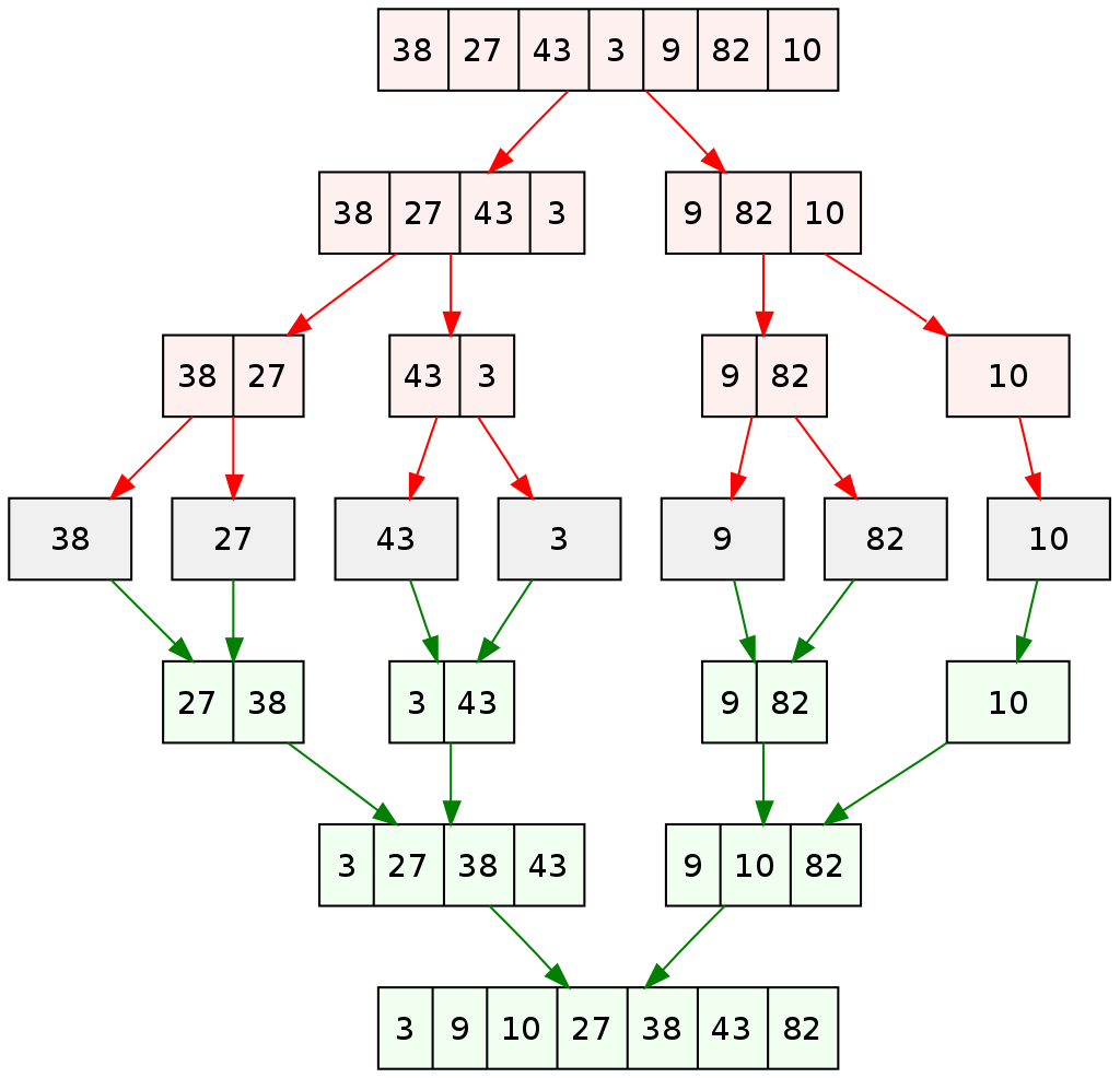 병합정렬은 배열의 길이가 1이 될때까지 다 쪼갰다가 다시 정렬하면서 붙여주는 작업이다.