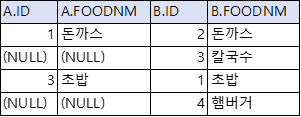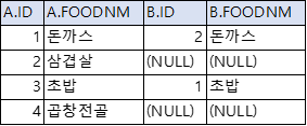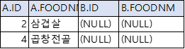 LEFT OUTER JOIN FOOD_B B