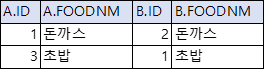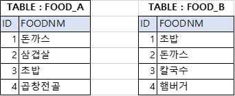 ON A.FOODNM = B.FOODNM;