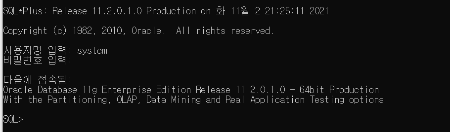 9. SQL Plus를 통해 제대로 접속되는지 확인하고 끝!