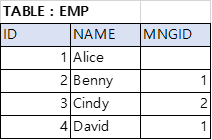MNGID 컬럼은 ID의 상위직책자의 ID이다.