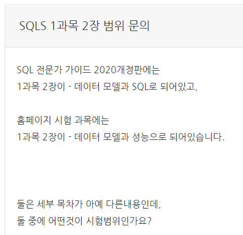 공홈에 있는 시험범위와 SQL 전문가 가이드 책에 있는 목차가 다르다.