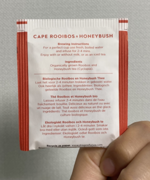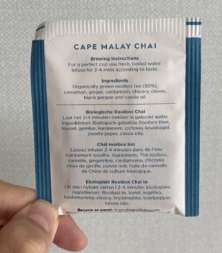 성분표를보면 루이보스가 60%를 이루고 시나몬, 생강, 치커리(!) 등등이 들어있다고 한다.