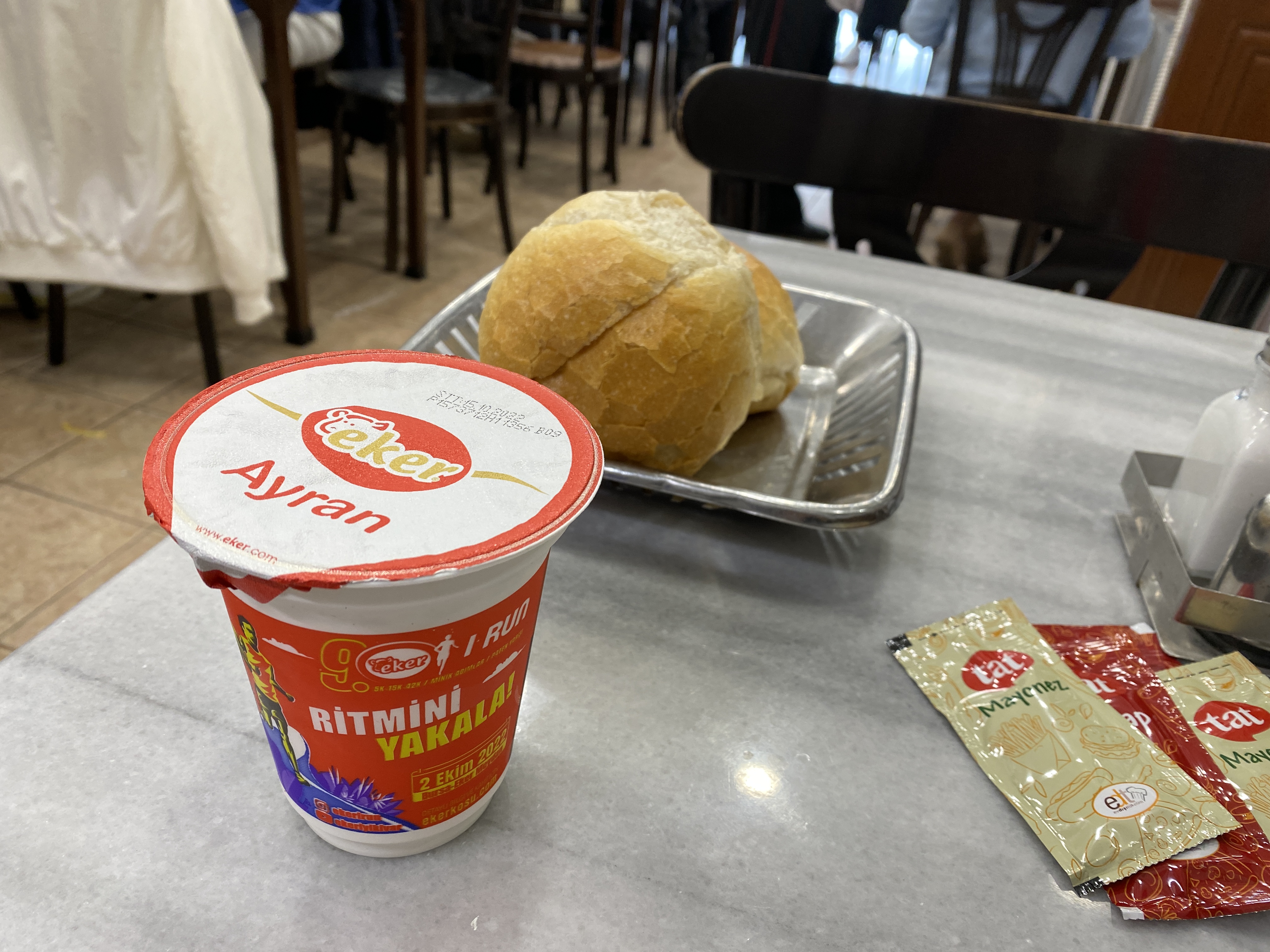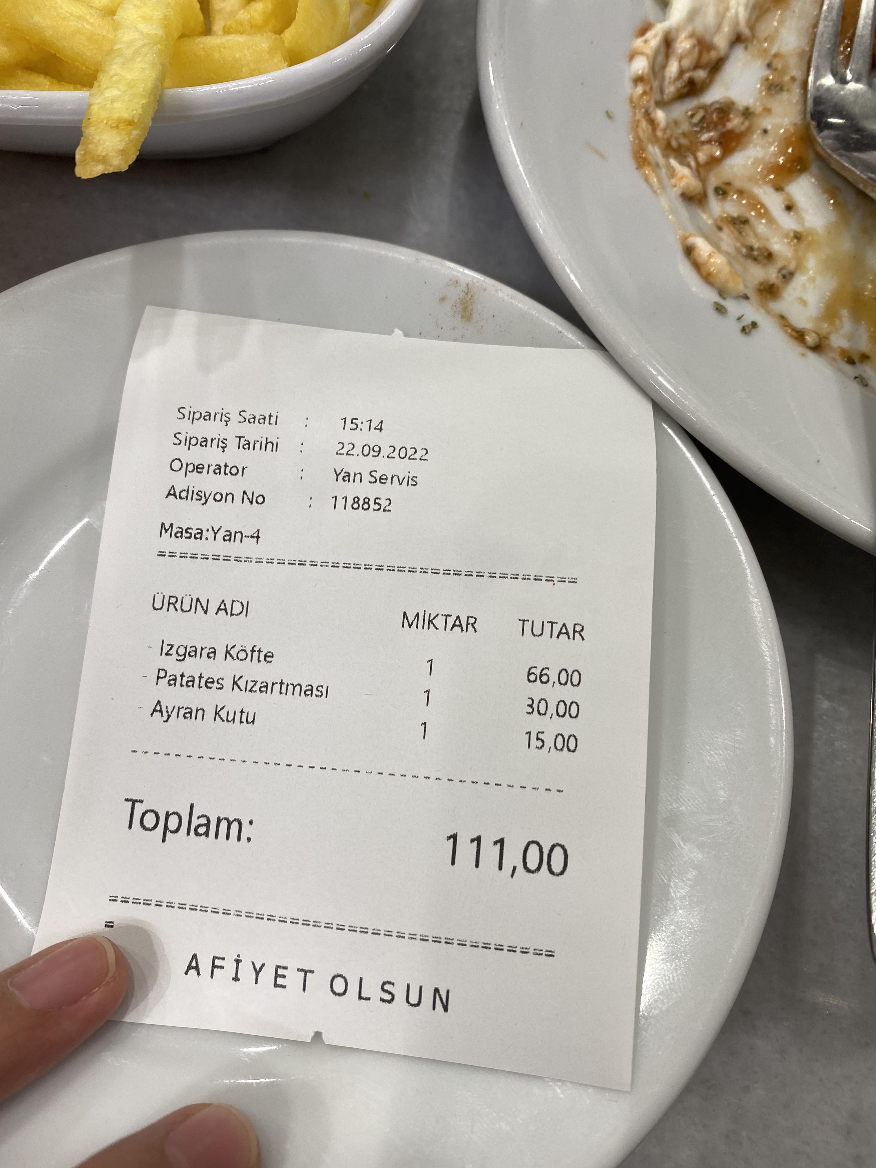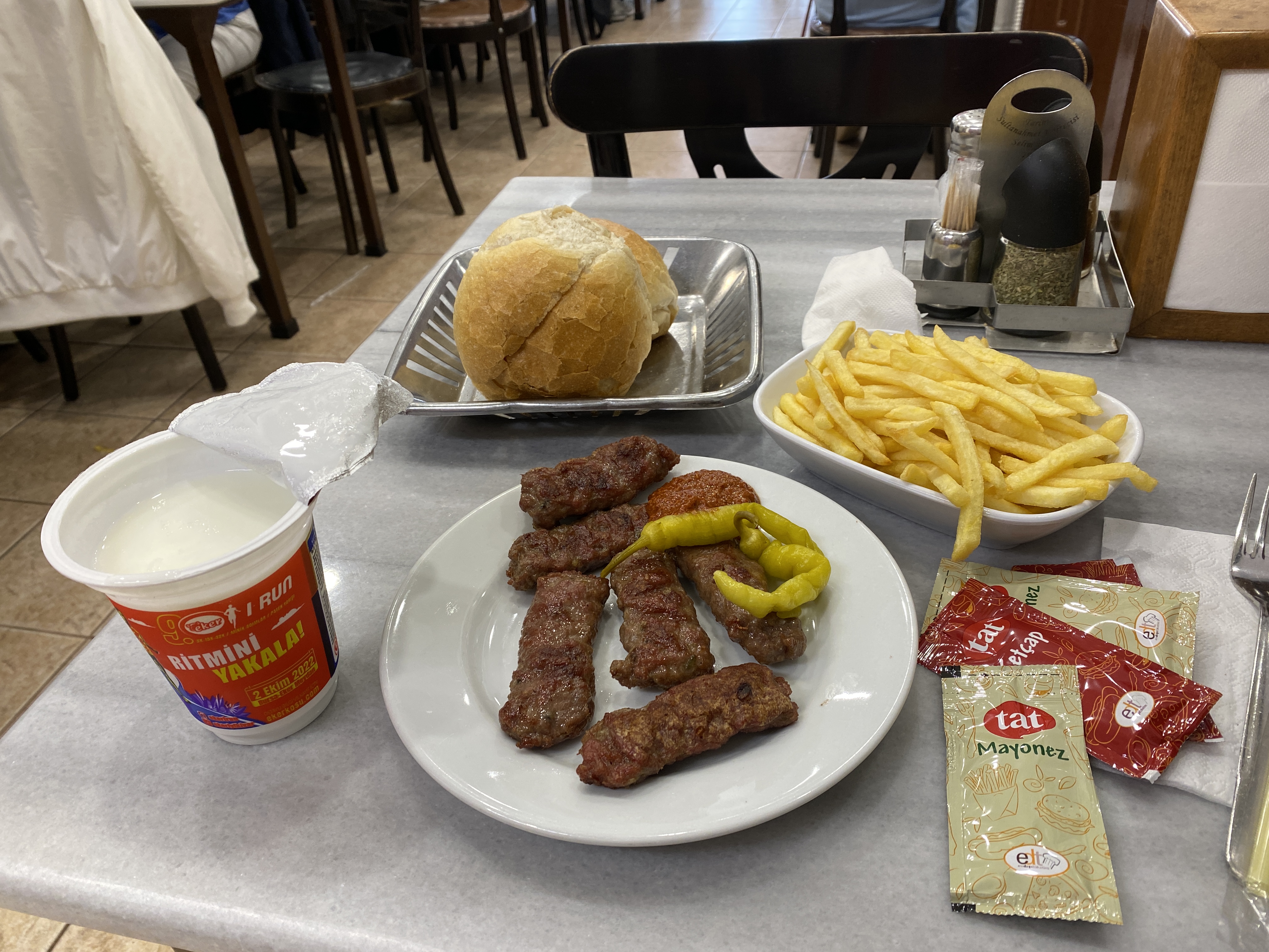 쾨프테, 감자튀김, 아이란을 시켰다. (빵은 서비스다)
