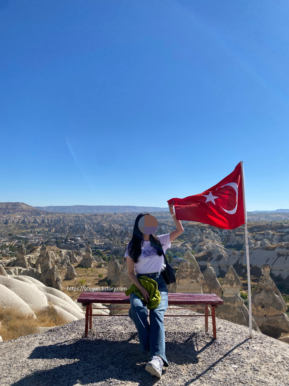 이렇게 뒤의 배경을 한 눈에 담을 수 있는 포토존이 있다. 터키 국기를 반대로 들은게 심히 거슬린다.