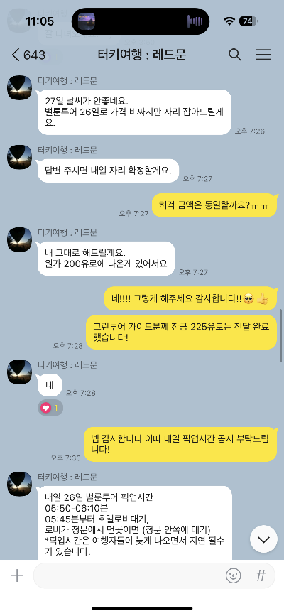 원래는 9/27에 벌룬투어를 신청했었는데, 그린투어중인 9/25에 레드문에서 카톡이 왔었다.
