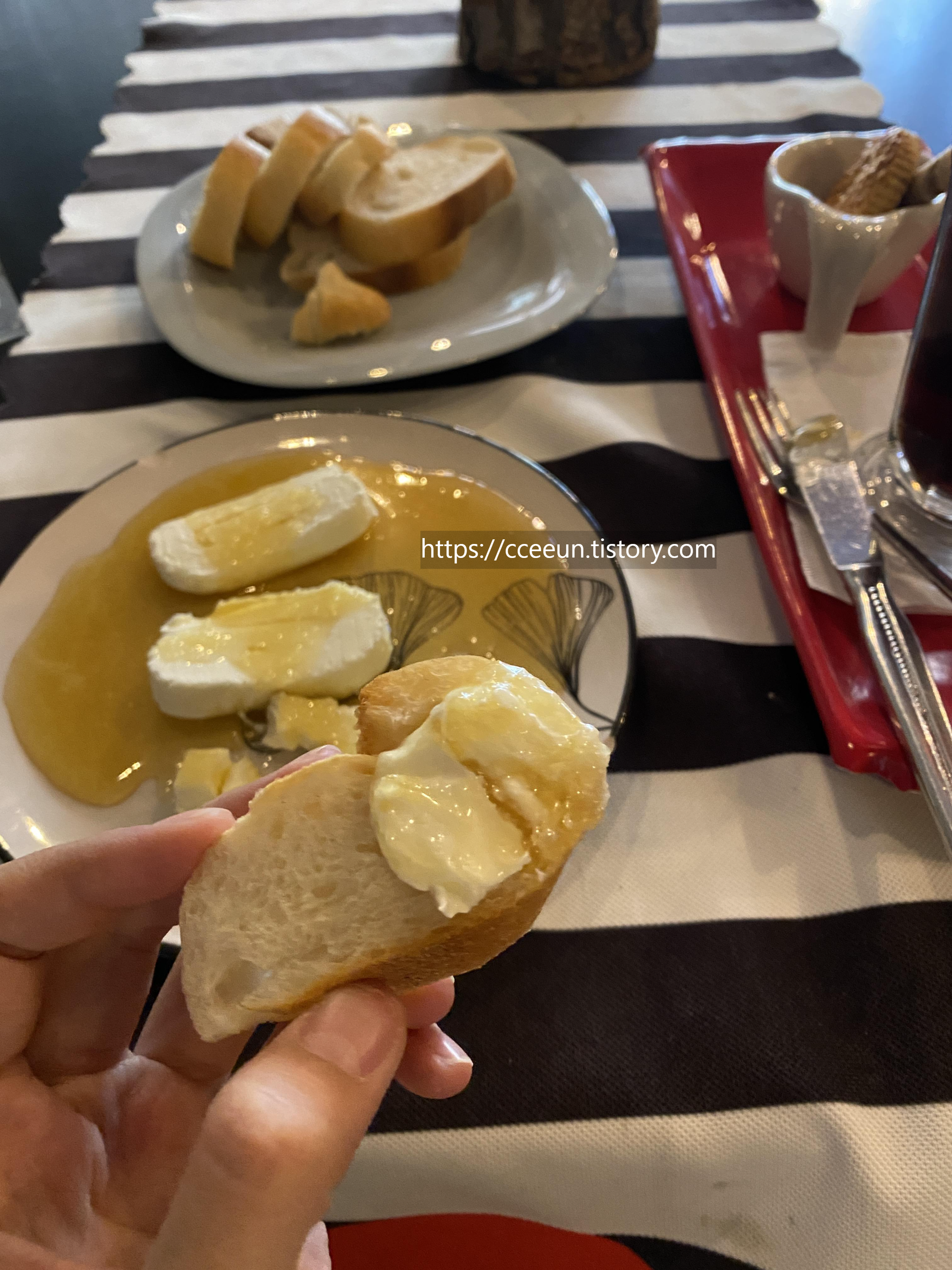 빵에 카이막 발라서 꿀이랑 찰칵.
