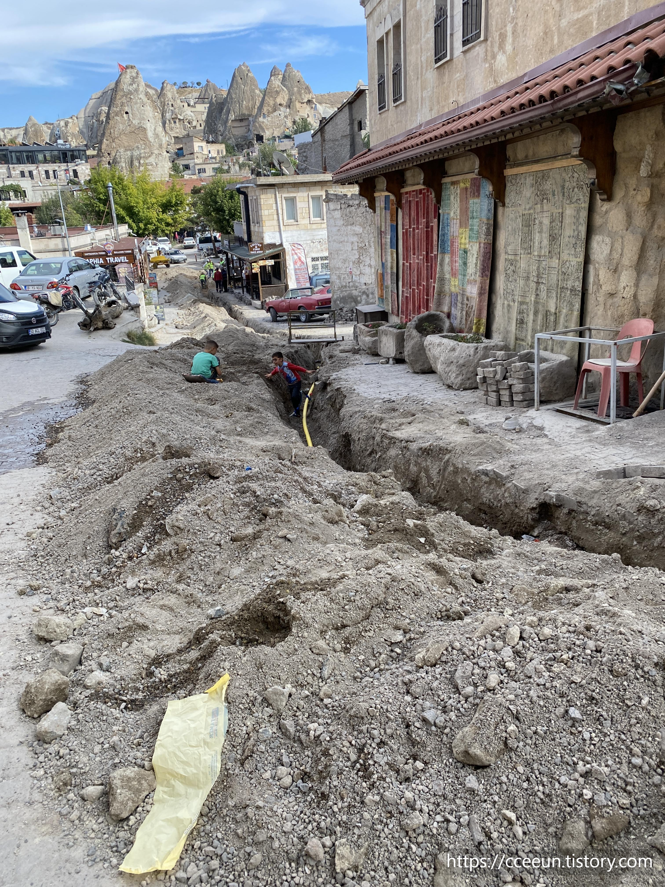 카파도키아 괴뢰메 마을은 곳곳에 이렇게 공사 흔적이 많았다.