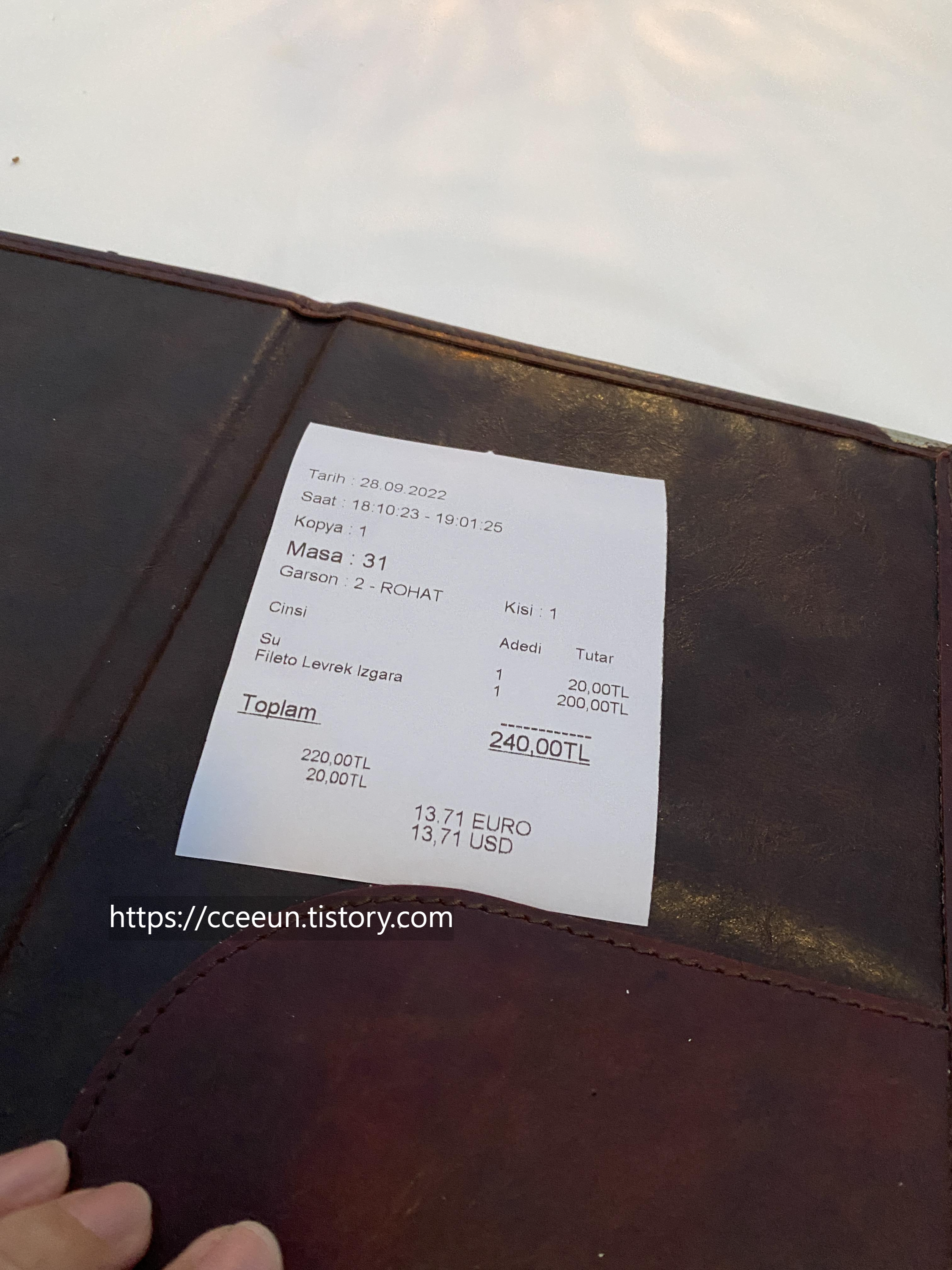 로컬 터키물가에비하면 비싼편이긴한데.. 씨푸드라는 점을 고려하면 저렴한편이다.