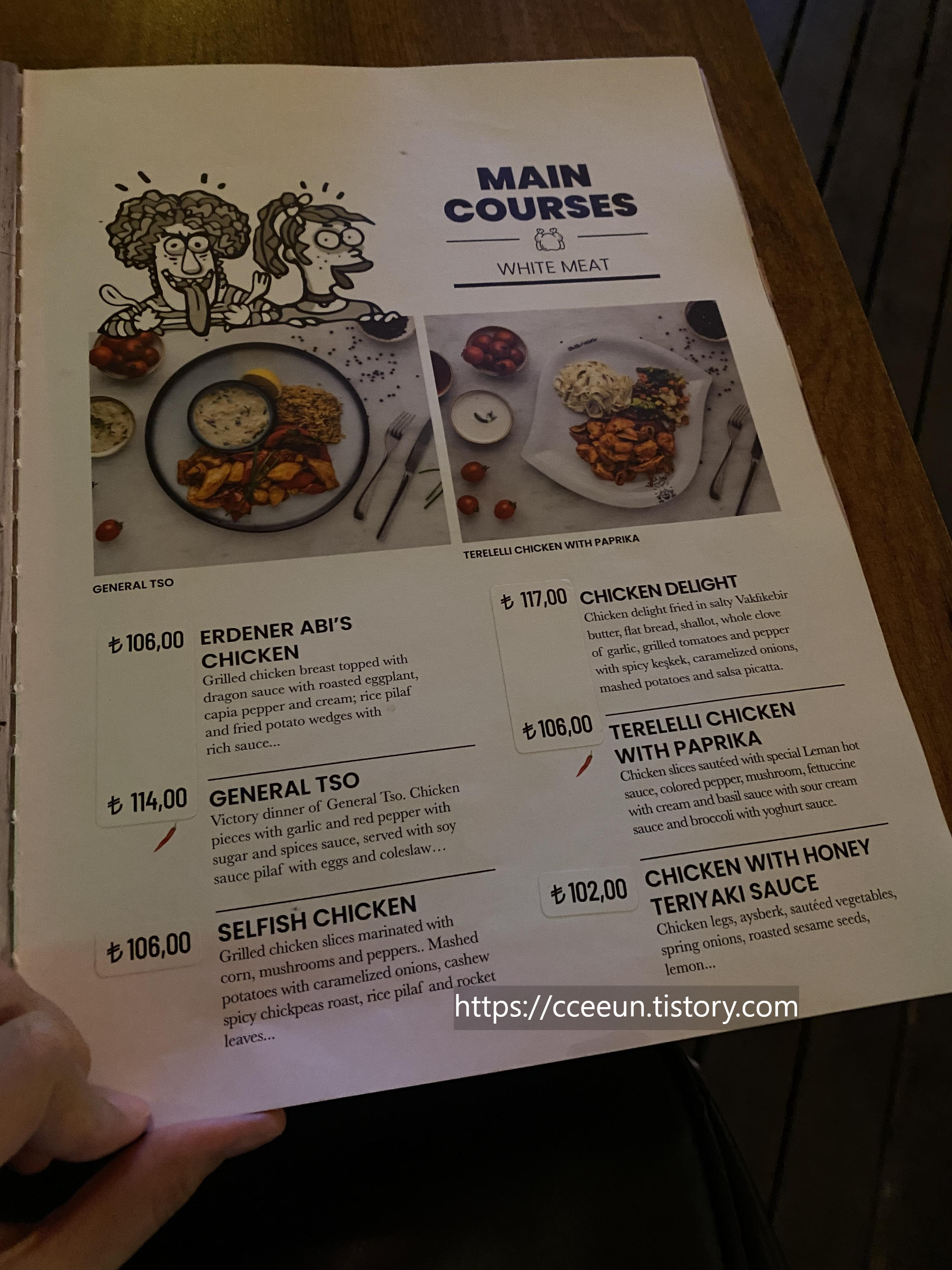 튀르키예 알마 레스토랑의 메뉴판이다.