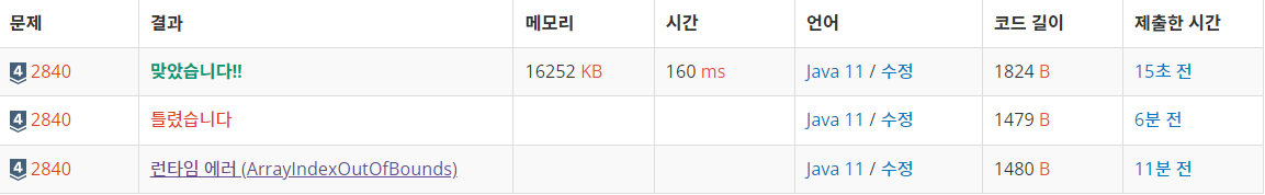 1트에서 글자가 몇번바뀌는지 배열적으로 고려를 안했고,
