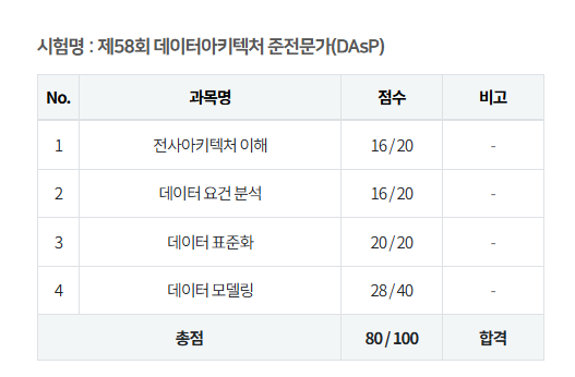 데이터아키텍처 준전문가(DAsP) 합격 수기를 작성해보려고 한다.