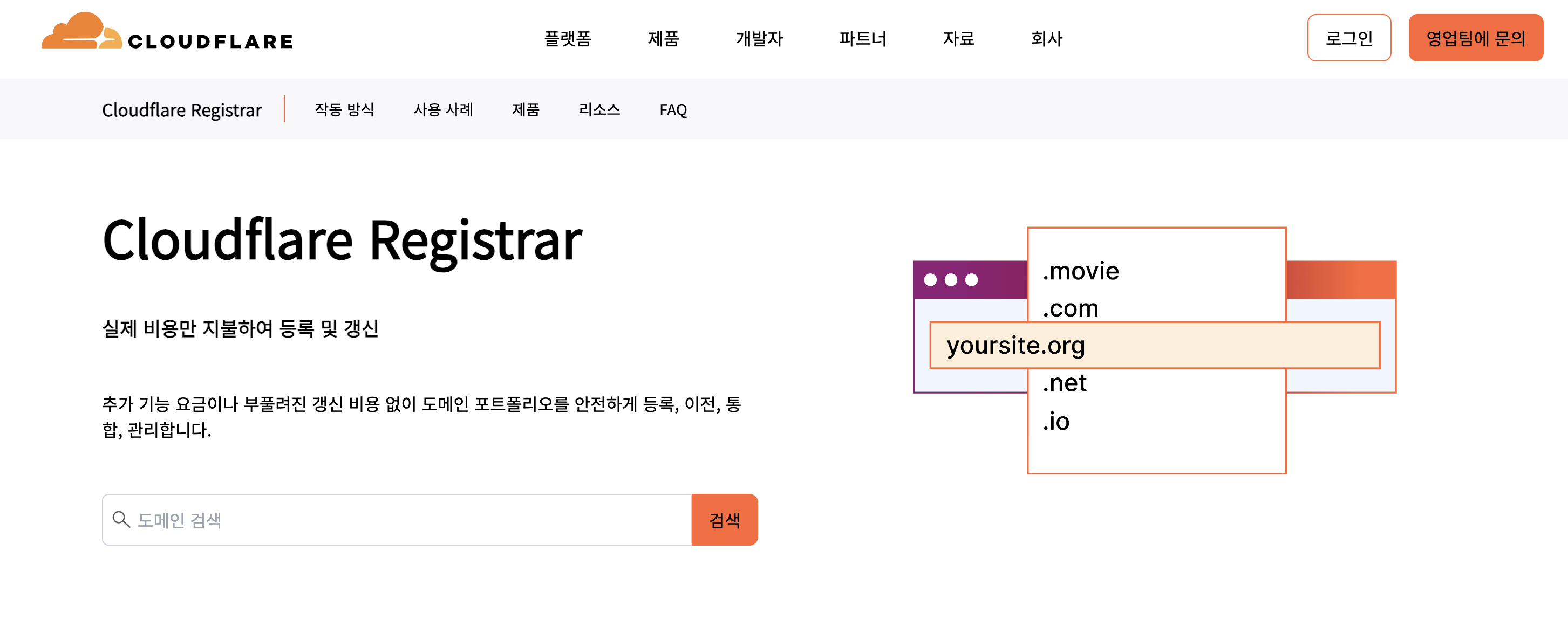 https://www.cloudflare.com/ko-kr/products/registrar/