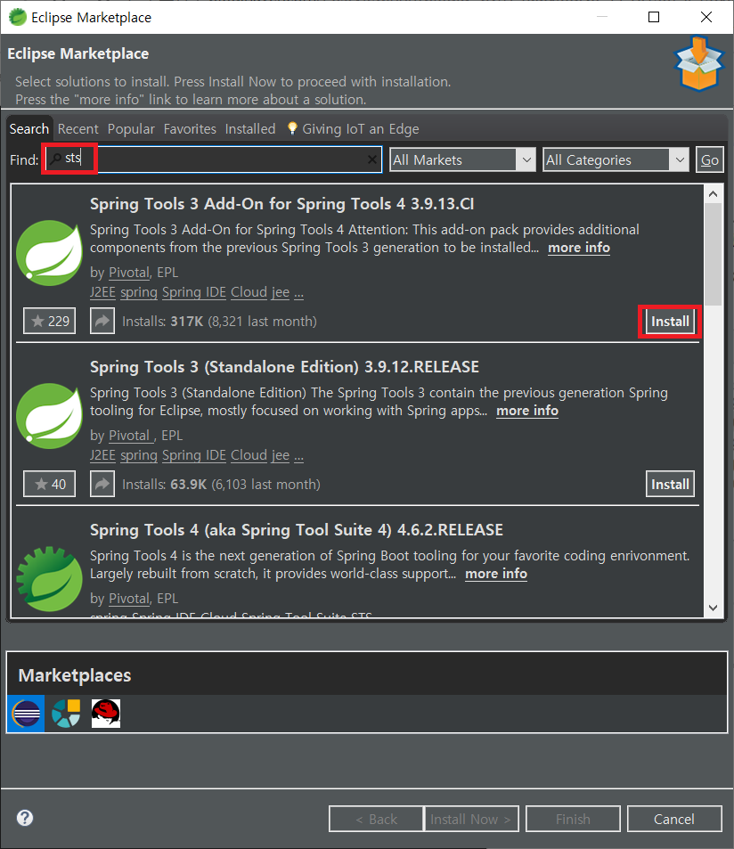 STS를 검색하여 Install을 진행한다.