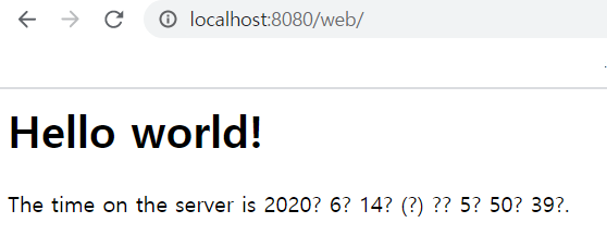 다시 localhost:8080/web에 접속을 하면, 이렇게 한글로 잘 나오는 것을 확인할 수 있다.