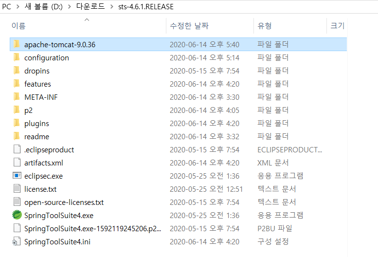 다운 받은 파일의 STS가 설치된 곳에다가 압축을 풀어준다. (아무데나 풀어도 상관은 없음)