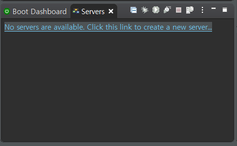 다시 STS로 돌아가서 Servers 탭의 우클릭을 하거나 No server .. 어쩌고 버튼을 눌러 New Server 창을 띄워준다.