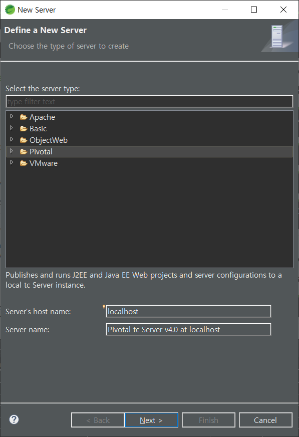 New Server를 하면 서버타입을 선택할 수가 있다.