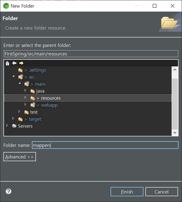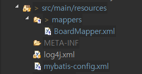 src/main/resources의 하위에 mappers 폴더를 생성한다. 폴더명은 root-context.xml에서 작성했던 path를 따른다.