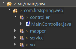 com.firstspring.web.controller 패키지 밑에 MainController.java를 생성해준다.