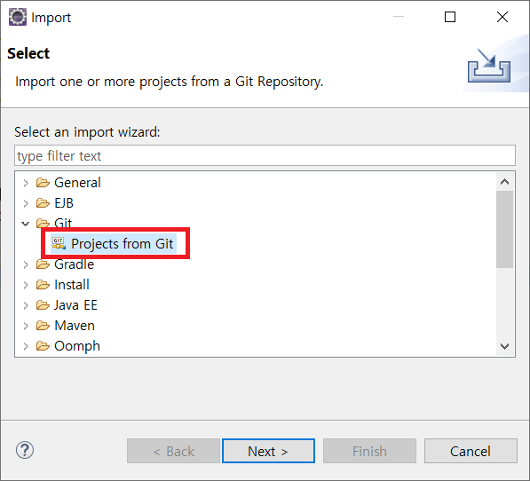 3. [Git -> Projects from Git] 클릭