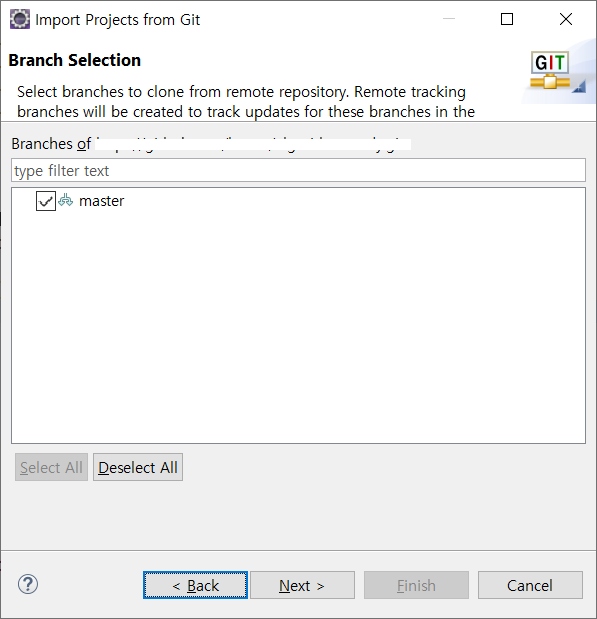 6. import할 branch 들을 선택하여 Next